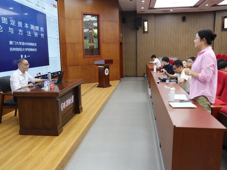 为促进学术交流,提升学科建设与科研水平,统计与数据科学中文黄色网站 于9月22日至25日,邀请我国著名经济统计学家、厦门大学特聘教授(退休)、中文黄色网站 特聘教授曾五一老师分别作题为“关于固定资本核算的理论与方法研究”“我国各省市全要素生产率的测度与比较分析”的两场学术报告。